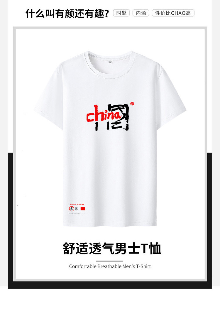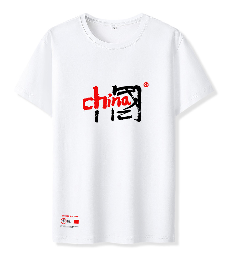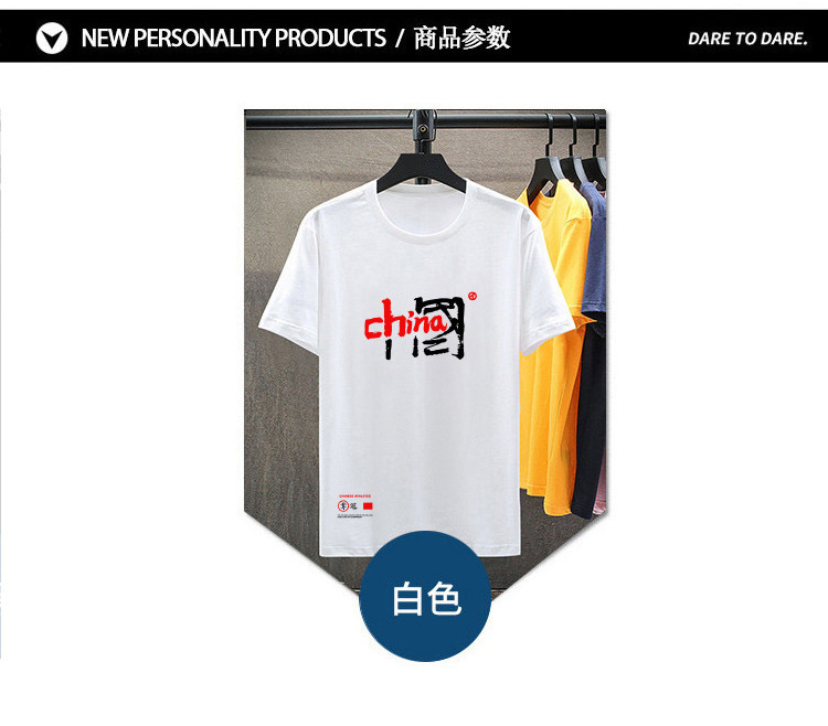 【"中國(guó)"印花】夏季新款港風(fēng)圓領(lǐng)短袖時(shí)尚純棉男式T恤