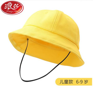 浪莎兒童遮陽帽夏防曬帽帶防風繩漁夫帽可折疊寶寶沙灘帽LSSQ-A045-2638 黃色 頭圍54cm[6歲-9歲】