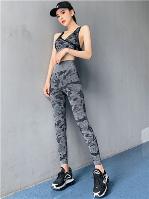浪莎高腰健身褲女彈力緊身套裝提臀迷彩速干跑步運動收腹瑜伽褲