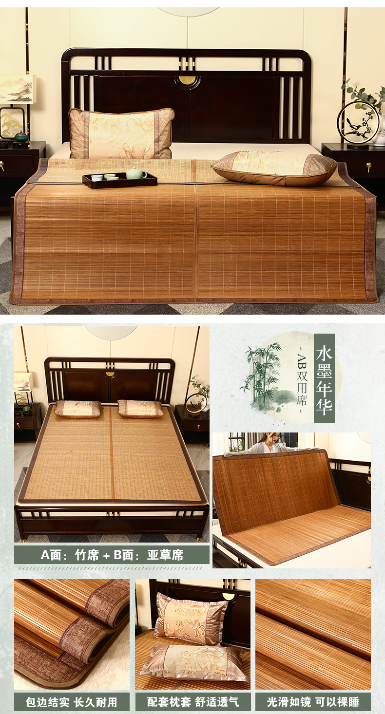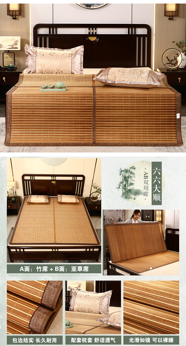 夏季碳化竹席可折疊席子單雙人宿舍1.5米1.8m床空調涼席雙面可用