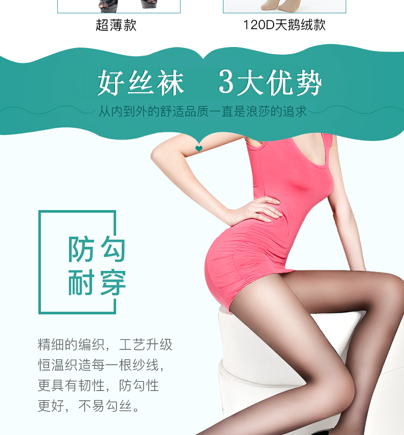 浪莎絲襪女性感襠部鏤空黑絲連褲襪 夏季隱形薄款防勾絲打底襪