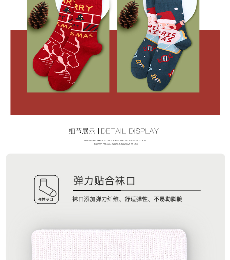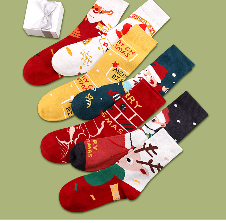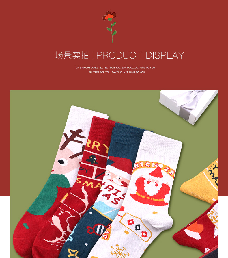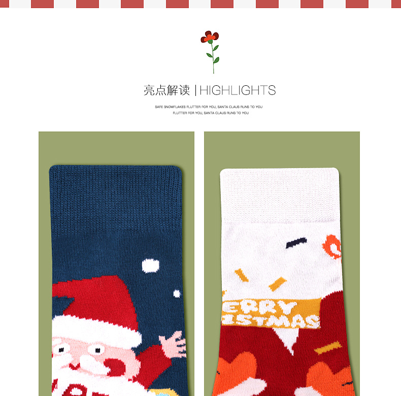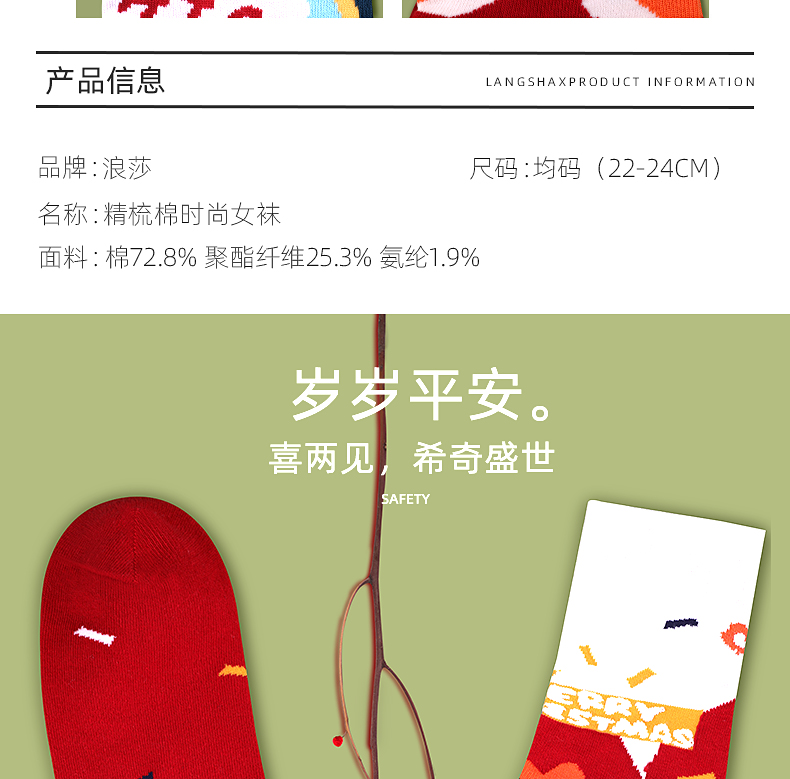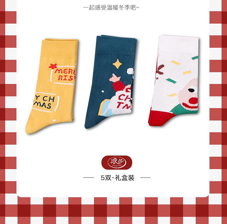 浪莎圣誕襪子女中筒襪秋冬季可愛(ài)本命年紅襪子圣誕節(jié)禮盒加厚棉襪