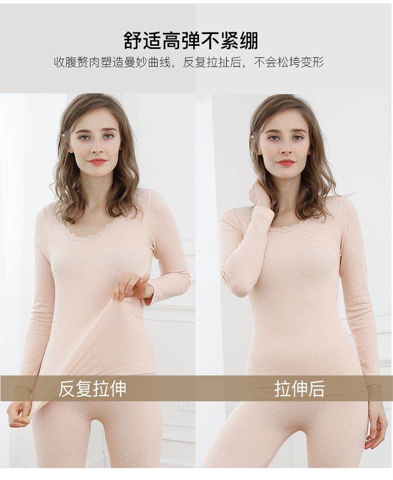 浪莎無縫提花美體保暖內衣套裝女士緊修身薄款秋衣秋褲性感打底冬